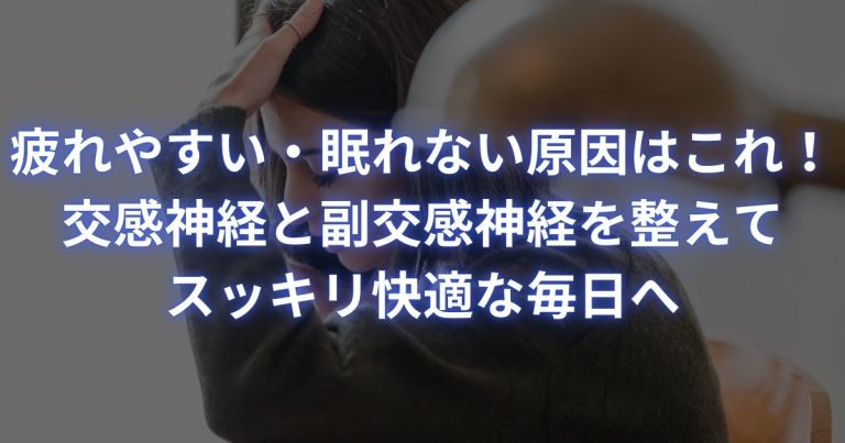 「なんだか疲れやすい」 「寝つきが悪い」 「ストレスがたまりやすい」そんな悩みを抱えていませんか? それは、交感神経と副交感神経のバランスが乱れているせいかもしれません。 私たちの体は、活動するときに働く“交感神経”と、 … 続きを読む 交感神経が優位になりすぎるとどうなる?副交感神経を高めて心身をリラックスさせる方法