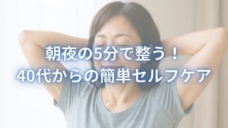 習慣づくり朝と夜でスッキリ!交感神経バランスを整える簡単ストレッチ法 40〜60代女性に向けて、自宅で簡単にできる交感神経を整えるストレッチ方法を紹介。肩こり・不眠・ストレスなど更年期特有の不調を改善し、朝晩5分の習慣で心と体のバランスを取り戻すセルフケア法を理学療法士が解説。 2025.05.19習慣づくり