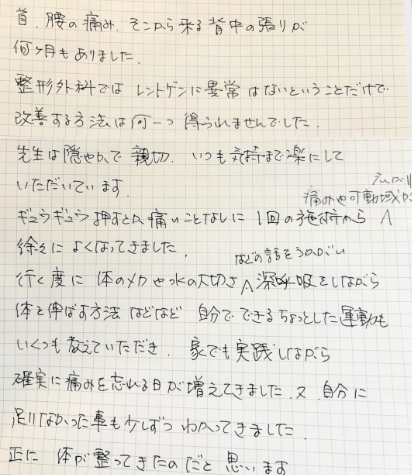 正直諦めていた中、たまたま出会った先生に施術してもらい改善しました。