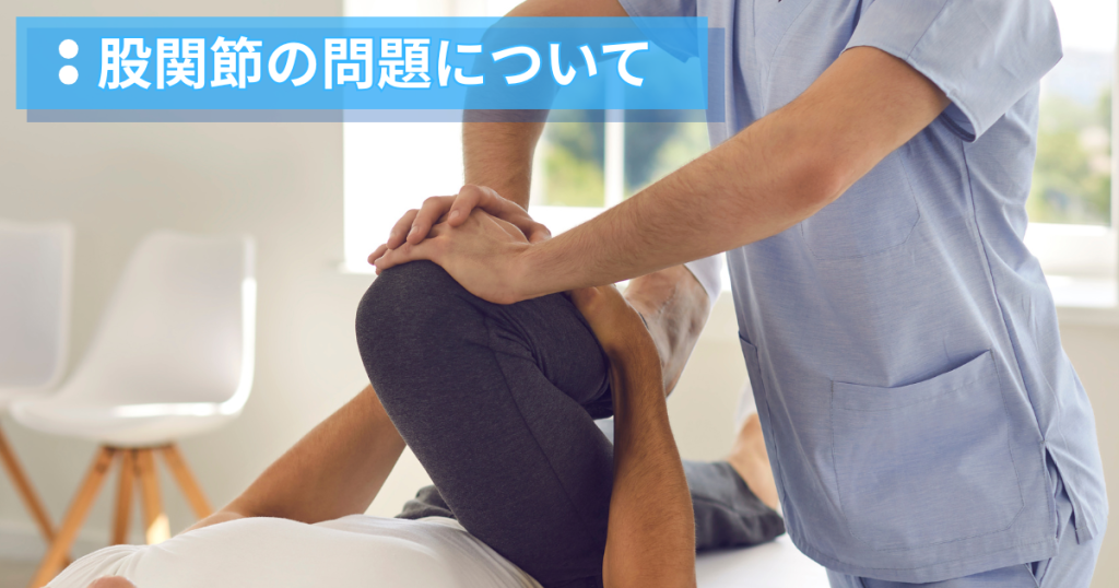 股関節の軟骨や関節面に負担がかかることで痛みが生じます。